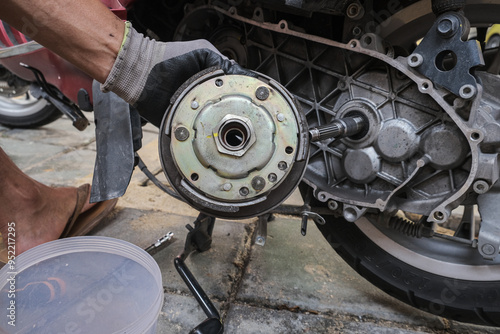 Mechanical working on automatic CVT transmission of scooter mortorcycle repair belt and clutch