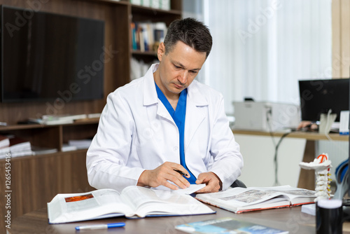 doctor, health care, office, book, writing, research, profession, concentration, education, practice, desk, cognition, anatomy, therapy, learning, academic, medicine, technology, documentation, analysis, training, exam, expert, equipment, workstation, office supply, dedication