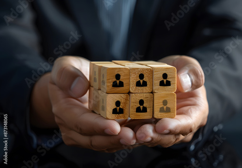 Mediation concept. Mediation between married couples, divorce, and the role of the mediator. Wooden block with icons of woman and man and mediation design