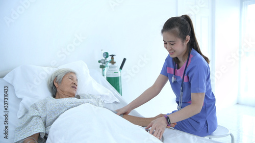 Medical concepts. Young nurse measuring the pressure of elderly patients in the hospital. 4k Resolution.