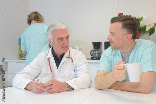doctor, hot drink, break, friends, talking, relax, teamwork, keyboard, office, computer, group, hot, black, drink, laboratory, health, indoor, tablet, horizontal, man, technology, discussion, 2, white, marble, cup, care, doctor, adviser, filter, mug, tea, male, meeting, pen, table, hispanic, modern, touch screen, hospital
