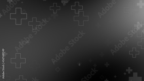 Medical health cross neon light shapes pattern on black background. Abstract healthcare with coronavirus infected deaths case concept.