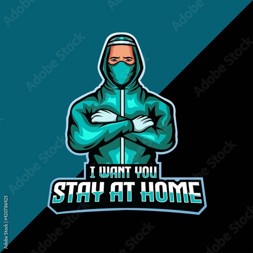medical mascot logo template. stay at home concept illustration. easy to edit and customize