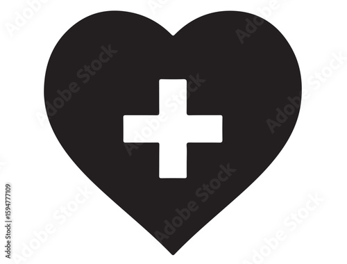 MEDICAL PLUS SIGN WITH HEART SILHOUETTE