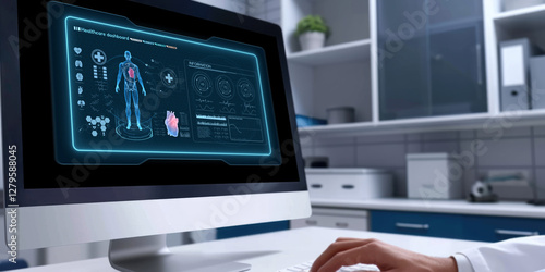 Medical science technology and futuristic healthcare virtual computer software analyze human health and diagnose disease for doctor data and medical research. brisk