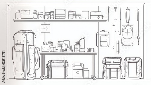 medicals, supply, storage, first aid, kit, backpack, container, organisation, health care, equipment, safety, hygiene, preparedness, workspace, essential, bandage, medication, bottle, tool, pouch, clean, orderly, emergency, assistance, item, cabinet, home, clinic, travel, survival, compact, various, bag, drawer, shelf, easy, access, arrangement, resource, setup, material, planning, efficient, functional, protective, label