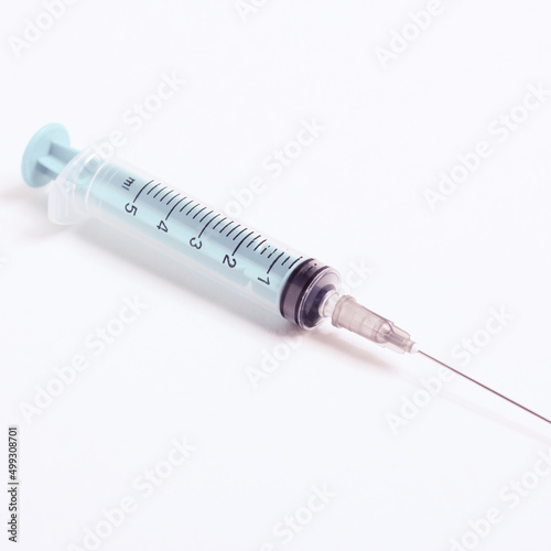 Medical syringe on a white background. A syringe for injection. The concept of health and beauty