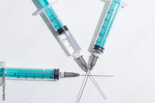 Medical syringe on a white background. A syringe for injection. The concept of health and beauty