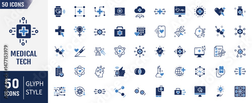 Medical technology flat icon set. Containing Digital, innovation, tech, healthcare and more. Vector illustration