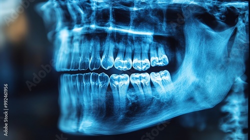 Medical X-ray and Tooth Illustration. Wisdom Tooth Growth, Dental Examination, and Root Canal Assessment
