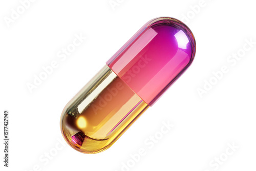 Medicine capsule with yellow and pink gradient isolated on transparent background