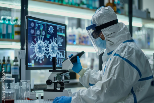 Medicine doctor and robotics research and analysis. Diagnose checking coronavirus or covid-19 testing result virtual screen laboratory