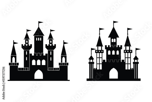 Medieval Castle Silhouette – Fortress with Towers and Gate Vector