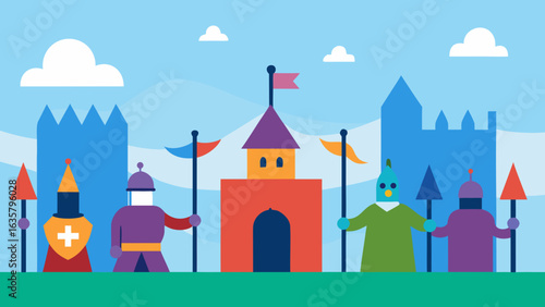 mediaeval, festival, birthday, scene, flag, knight, celebration, party, fun, children, festive, happy, joy, playful, cartoon, vector, illustration, holiday, castle, decoration, gift, funny, art, design, history, friendship, event, celebrate, armoring, tournament