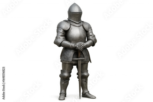 knight, mediaeval, armoring, sword, warrior, history, metal, standing, guard, protection, chivalry, soldier, battle, war, full-length, isolated, security, power, strength, costume, uniform, helmet, weapon, steel, silver, ancient, traditional, historical, combat, defense, europa, middle-ages, renaissance, fantasy, character, cosplay, game, render, three-dimensional, illustration, cut-out, template, nobody, vertical