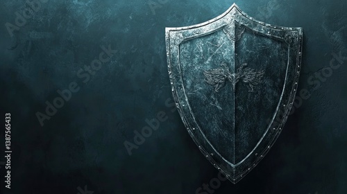 Medieval Shield with Winged Emblem Against a Dark Stone Background