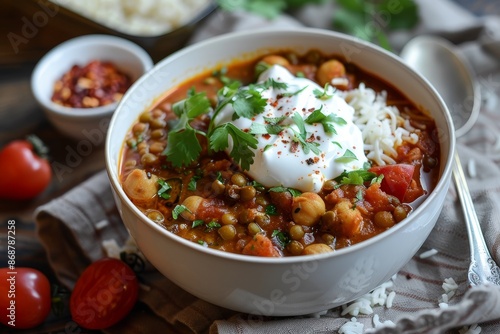 chili, lentil, food, summer, spring, winter, light, white, autumn, cheese, tomatoes, soup, dinner, meal, lunch, protein, parsley, spicey, bean, bean, paprika, bowl, curry, savoury, stew, coriander, turmeric, feta, chili pepper, red pepper, cumin, chickpea, traditional, spoon, bowl, cooked, filling, hearty, lentil, serving, southwest, topping