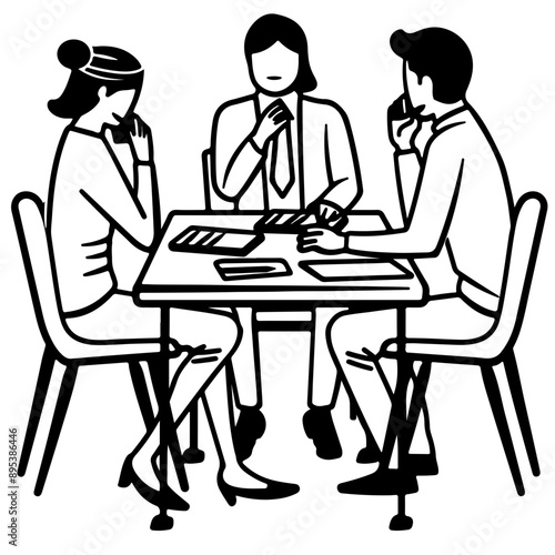 people, sitting, business, person, meeting, doodle, line art, vignetting, drawing, office, illustration