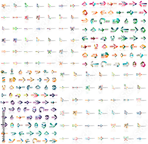 Mega collection of geometrical abstract logo templates, origami paper style business icons with sample text. Vector