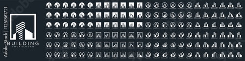 Mega logo collection, Abstract building architecture logo design. icons for business of luxury, elegant, simple.
