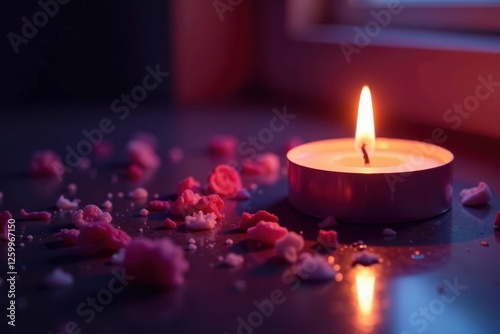 Melting wax, candlelight reflecting onto surface, candle, warm