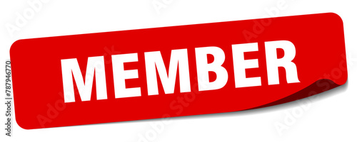 member, membership, sticker, label, peeler, signs, banner, isolated, rectangular, red, template, vector, white background