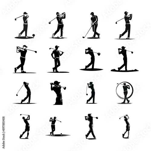 sport, man, vector, golf, illustration, golfer, person, logotype, adult, symbol, athlete, competition, player, playing, silhouette, design, golf club, club, game, one person, vertical, ball, design element, kitsch, icon, avocation, adults only, one man only, play, professional, recreation, tournament, training, golfing, pop art, swing, abstract, active, colours, line art, vacation, background, black-and-white