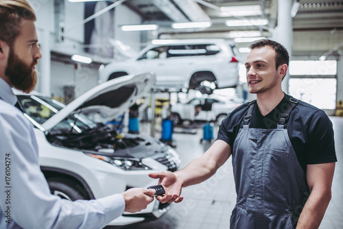 adult, auto, automobile, automotive, business, businessman, car, caucasian, client, client, engine, examining, fix, garage, hand, photogenic, indoor, industry, inspection, job, key, key, looking, maintenance, male, man, master, mechanic, man, occupation, owner, people, person, profession, professional, repair, service, shop, showing, station, talking, technician, technology, transport, 2, uniform, vehicle, white, work, men at work