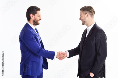 Men shaking hands. Handshake sign of successful deal. Business meeting. Business deal leaders company. Capital merger. Glad to meet you. Thank you for cooperation. Collaboration of business people