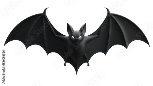Menacing black bat with glowing eyes isolated PNG, Halloween creature with spread wings on transparent background, spooky nocturnal animal