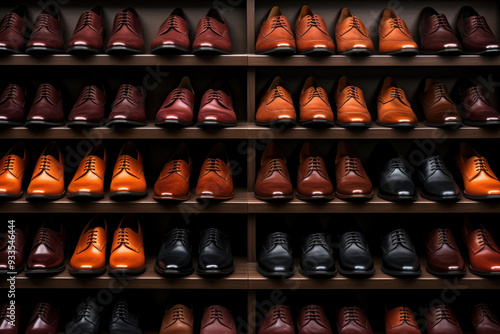 store, classic, casual attire, style, collection, shelf, footwear, retail, leather, shop, elegance, colours, fashion, business, boutique, shoe, clothing, man, stylish, design, brown, sell, display, luxury, new, male, background, expensive, accessory, boot, sale, row, modern, quality, nobody, closeup, trendy, wear, purchase, shoe shop, shiny, foot, different, fashionable, shoe