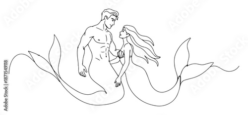 mermaid, couple, ocean, underwater, tail, love, romantic, sea, swimming, fantasy, vignetting, vector, illustration