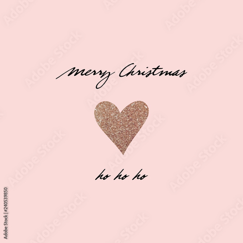 Merry Christmas vector lettering. Christmas calligraphy. Xmas greeting card. Gold glitter heart. Hand drawn clip art. Isolated typography print. Ho ho ho inscription.