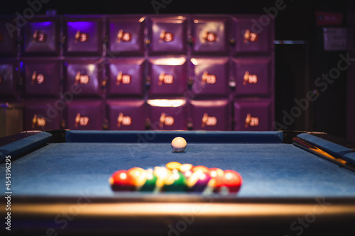 billiard table, billiard, ball, game, snooker, sport, signs, leisure, fun, competition, green, sphere, entertainment, felt, number, playing, love, club, break, pub