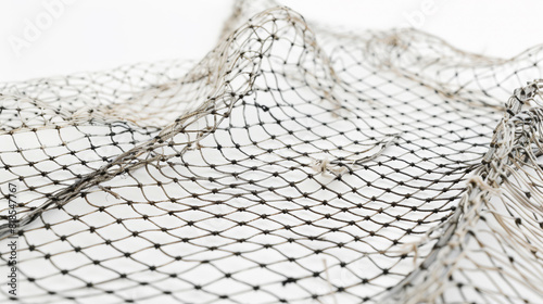 Meshed Memories: Close-Up of Fishing Net on White. Generative AI