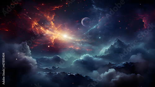 Mesmerizing space scene with vibrant galaxy cloud nebula. Fantasy scene. Ai generated