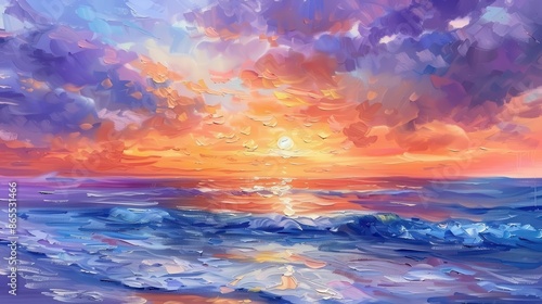 mesmerizing sunset over tranquil ocean painting sky in hues of orange pink and purple oil painting