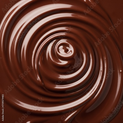 Mesmerizing swirls of rich, melted chocolate, a smooth and decadent texture. This luxurious, deep brown confectionery backdrop evokes indulgence, perfect for gourmet desserts