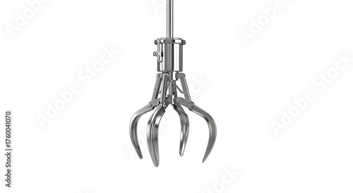 claw, grabber, tool, metal, mechanical, device, equipment, instrument, mechanism, gripper, arm, finger, steel, chrome, silver, shiny, handle, rod, adjustable, surgical, medicals, industrial, robotic, precision, engineering, technology, automation, robot, machine, part