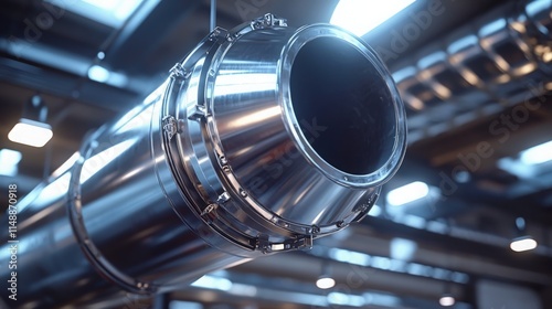 exhaust, pipe, metal, workshop, machinery, industrial, facility, mechanical, bright, light, engineering, manufacturing, equipment, production, design, technology, steel, chrome, infrastructure, construction, maintenance, tool, assembly, repair, installation, factory, innovation, precision, fabrication, component, system, ventilation, air, flow, shiny, surface, mechanic, performance, system, automotive, environment, line, metalwork