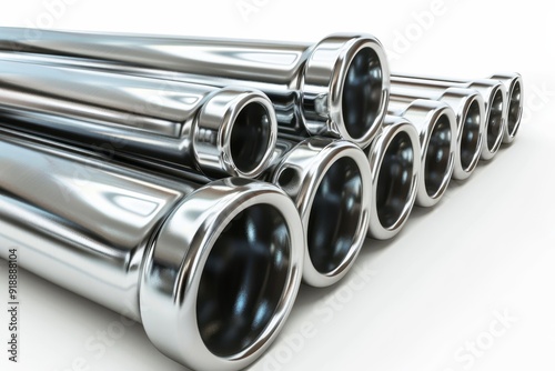 pipe, metal, tube, steel, chrome, cylinder, stainless, iron, white, round, shape, industry, stack, pipeline, construction, isolated, engineering, industrial, perspective, decrease, group, object