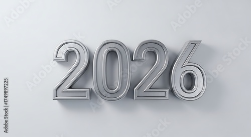 2026, year, future, new year, upcoming, calendar, time, anniversary, celebration, event, countdown, modern, sleek, metallic, chrome, silver, shiny, glossy, three-dimensional, rendering, illustration, design, background, white background, minimalist, clean, simple, text, number, digit, typography, graphic, art, concept, visual, symbol, happy, holiday, metal