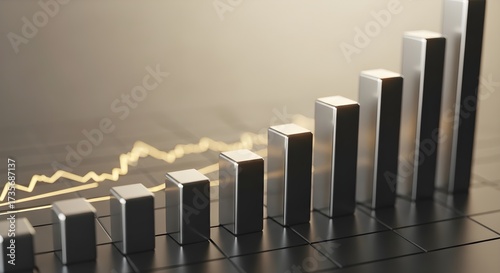 graph, bar, metallic, block, trend, upward, growth, finance, business, investment, chart, datum, analysis, statistic, economy, market, success, progress, achievement, development, increase, rise, elevation, improvement, gain, profit, return, generating, performance, indicator, report, presentation, visualisation, diagram, illustration, concept, strategy, planning, goal, objective, target, advancement, expansion, prosperity, wealth, capital, asset, portfolio, stock