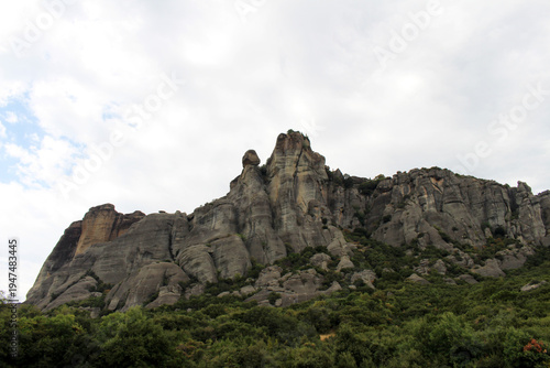 Meteora Rock Formation Landscape August 2024 Ancient conglomerate cliffs with lush forest