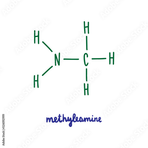 Methyleamine hand drawn vector formula chemical structure lettering blue green