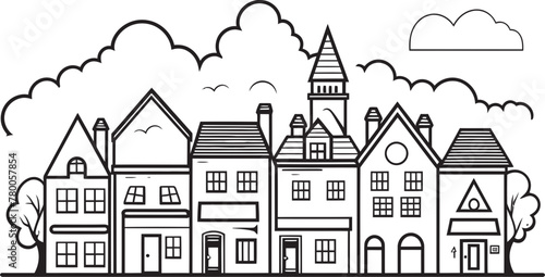 Metropolitan Mirage: Vector Logo of Minimalist Urban Scene Skyline Schematic: Clean Townscape Line Art Design