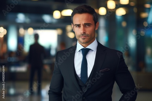 white-collar worker, business travel, architecture, businessman, facial hair, photo, young adult, background, front view, human face, human hair, one person, accessory, clothing, head shot, portrait, standing, waist up, apparel, looking, mexican, necktie, serious, smiling, blazer, blurry, jacket, modern, office, person, tuxedo, adult, beard, human, photo, image, city, coat, face, head, male, suit, man, attaching