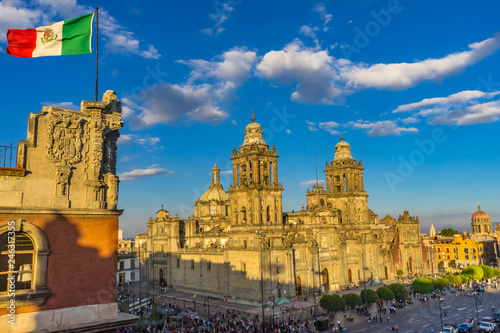 Mexican Flag Metropolitan Cathedral Zocalo Mexico City Mexico