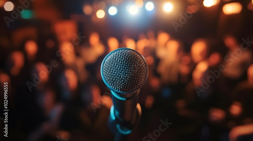 microphone, stage, performance, concert, music, live, event, entertainment, audience, crowd, spotlight, light, sound, audio, recording, show, band, musician, singer, artist, music festival, club, bar, venue, audio system, speaker, night, dark, blur, bokeh, abstract, background, texture