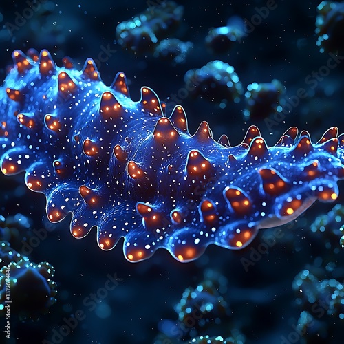 Microscopic creature for vibrant blue, glowing, deep ocean.
